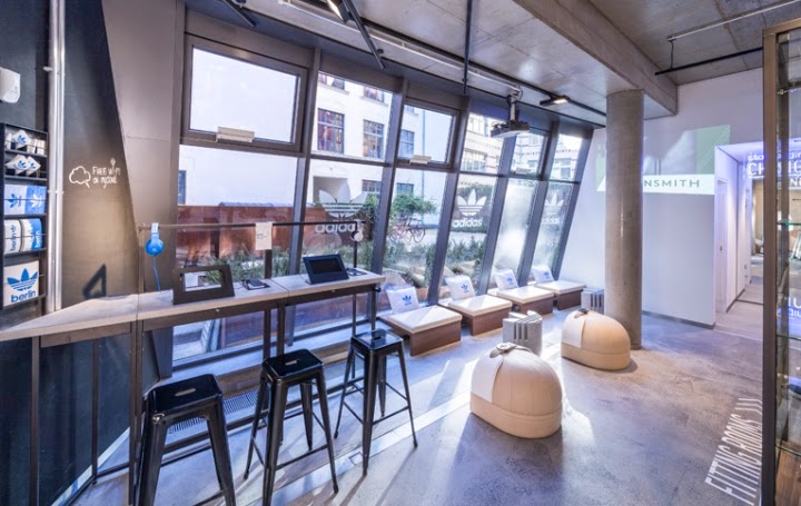 Adidas have tweaked the retail strategy for their street fashion-inspired Adidas Originals line and conceptualized a separate league of flagship stores that actively reflect and engage with the street culture of their respective location. The first one to open is in Berlin where the existing store in the Mitte neighbourhood has been entirely revamped. The store has been stripped bare to reveal its concrete shell. Furnished with specially designed displays crafted from steel and wood in demure hues, the retail space has a clean and streamlined look that allows the merchandise to pop.